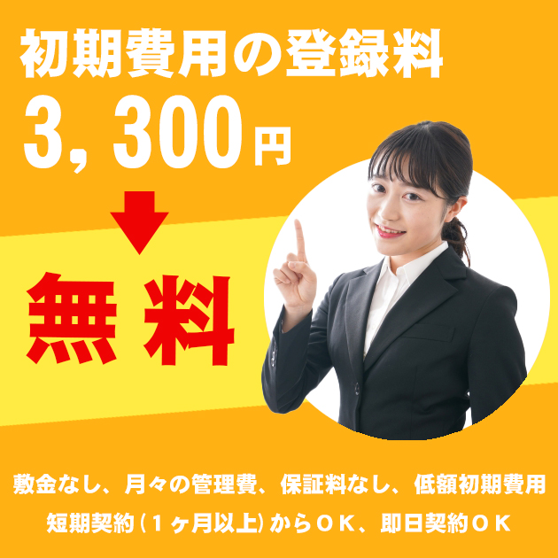 キャンペーン記念の為、初期費用の登録料3.300円ところ無料です。
